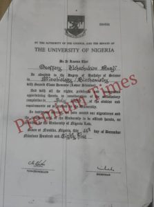 While Nigerians were waiting to see how this uncanny plot will be untangled, the smart (though by half) Uche instituted one of the most frivolous law suits in Nigeria’s history, took a writ to restrain the University of Nigeria Nsukka from tampering with an academic record that does not exist.